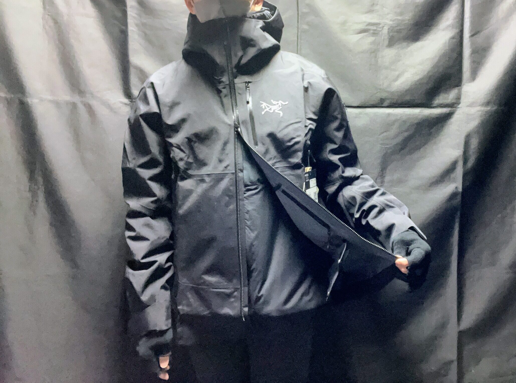 アルファSVは全体が100デニールのナイロン、ラッシュジャケット(2023ver.)は80デニールと100デニールの複合素材、ベータAR(2023ver)が40デニールと80デニールの複合素材なことを考えれば、全体が200デニールというしっかりしたナイロン糸で作られているセイバーSVは、見た目も、手に取った質感も、とてもずっしりしています。これだけしっかりした生地なら「防風効果」もより上がるわけで、ジャケットそのものに保温性能はないかもしれませんが、防風性能による保温力はあると思います。しかも、ゴアテックスプロなのでしっかり風を防ぎ、「湿気」は逃してくれます。ゴアテックスの「パフォーマンス」(一般的なやつ)と「プロ」の違いは、「防水」「防風」「透湿」などがより優れたのものが「プロ」となります。とはいえ、通常のゴアテックス(パフォーマンス)でも十分すぎるものがあると思いますが…。