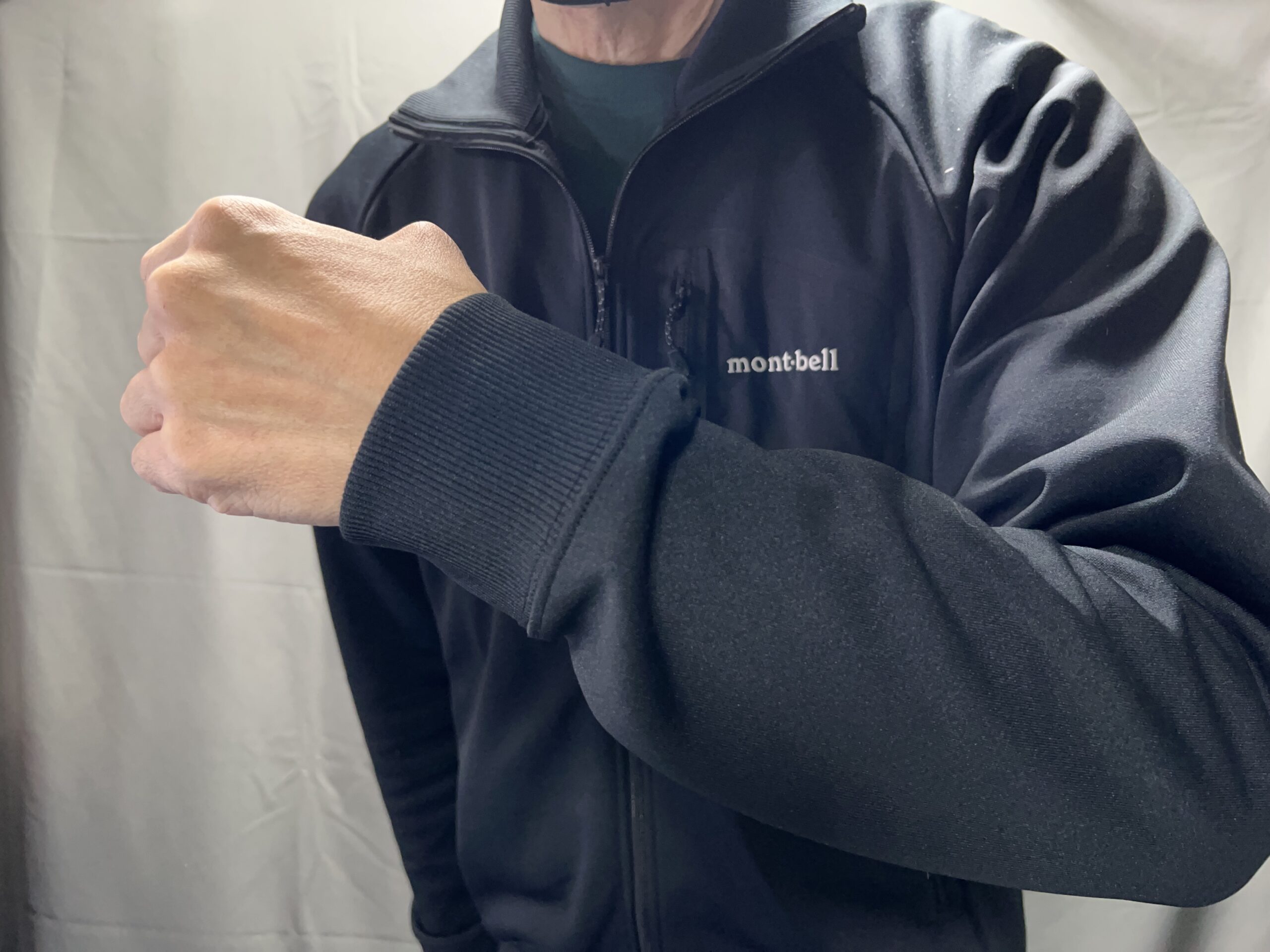 実は、私はマウンテンジャージジャケットをすでに持っているのですが、サイズがXLなので、アークテリクスLサイズに合わせるにはバッチリなのですが、MサイズのガンマMXの下に着るには、着れないことはないのですがやはり少し大きい感じがしました。なので今回は、海外版のMサイズを購入することにしました。国内版XLサイズで腕の長さがちょうどいいので、国内版Lサイズだとやはり少し短く感じる可能性が高いからです。その点、国内版より腕が長くできている海外版なら安心です。国内版Lサイズより海外版Mサイズの方がややスリムにできているので、現在の私の体形にはぴったり(というか少し余裕がありますが)でした。寒い日はマウンテンジャージの上に同じくモンベル製のスペリオダウン・ラウンドネック、その上にガンマMXという組み合わせもイケるかもしれません。